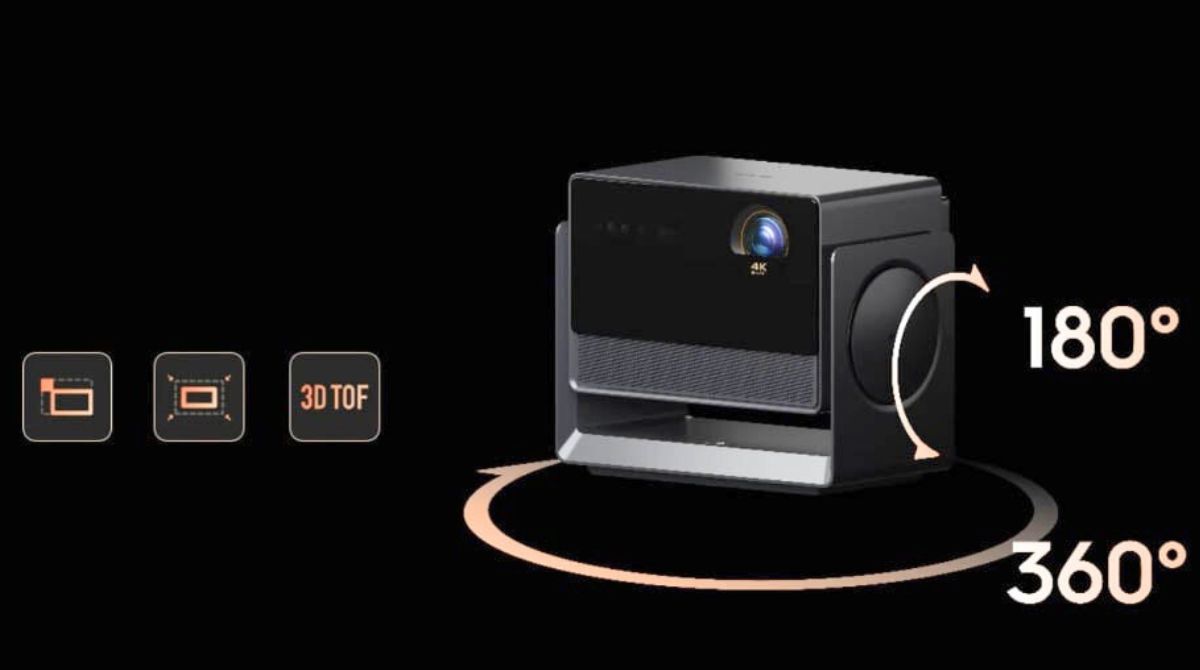 Đặc biệt, máy được trang bị một chân đế xoay linh hoạt, cho phép điều chỉnh góc chiếu một cách dễ dàng mà không cần đến các phụ kiện hỗ trợ phức tạp.